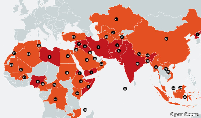 سازمان «درهای باز»، وضعیت مسیحیان در جفا در ۵۰ کشور جهان را بررسی کردهاست. در فهرست سالانه دیدبان جهانی آزار مسیحیان که «درهای باز» منتشر کرده، کره شمالی بار دیگر به صدر جدول بازگشته است و سومالی، یمن در ردههای بعدی قرار گرفتهاند.